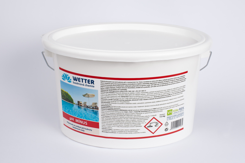 Package: Jar 1.4kg, 2.2kg, 7.5kg Dosage: 10g/m3 lower pH value by 0.1 (dosage depends on water hardness – the dosage is higher with hard water)